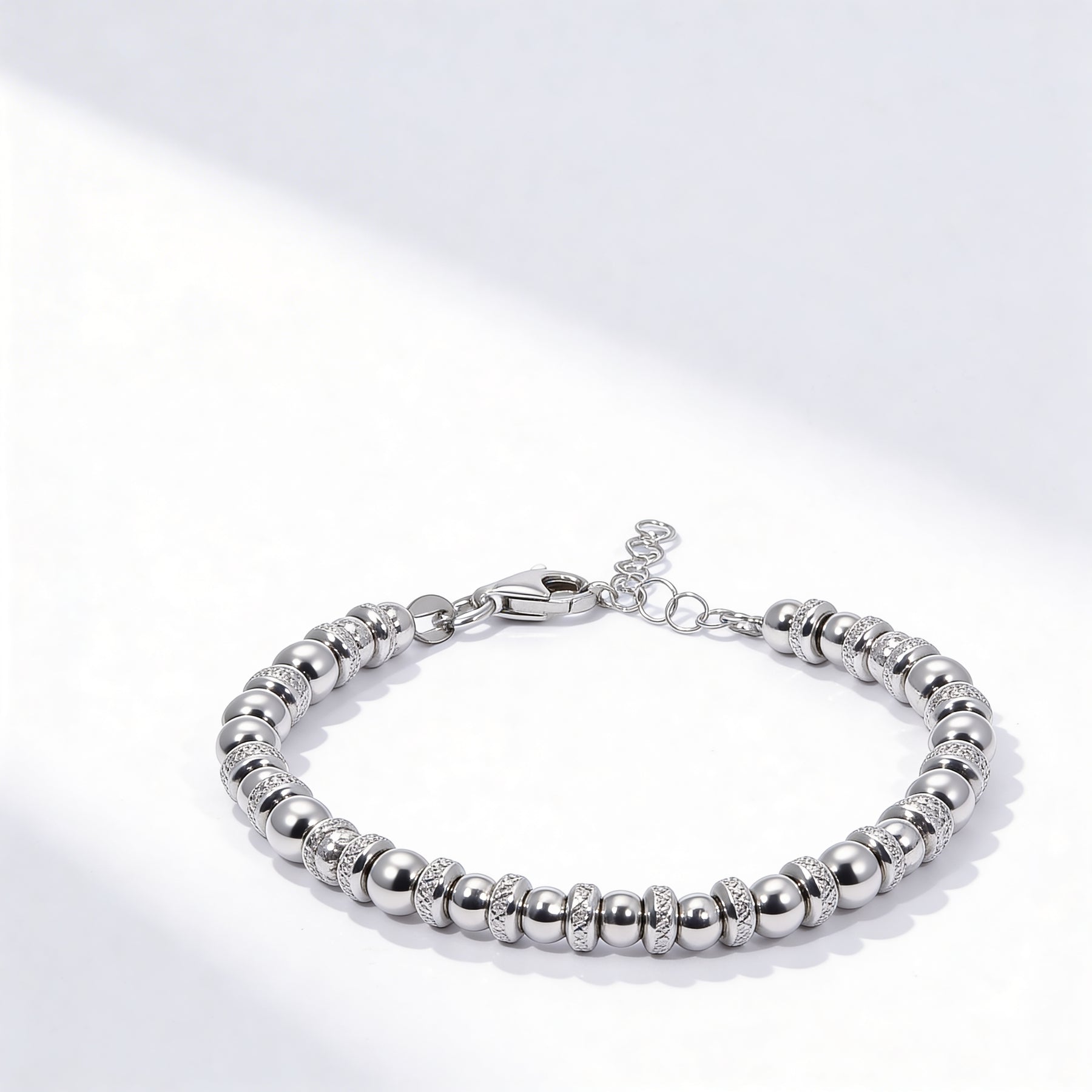 This 925 Sterling Silver Beaded Bracelet is designed to deliver subtle sparkle with timeless sophistication. A continuous row of polished spherical beads creates a smooth rhythm around the wrist, reflecting light delicately with every movement.